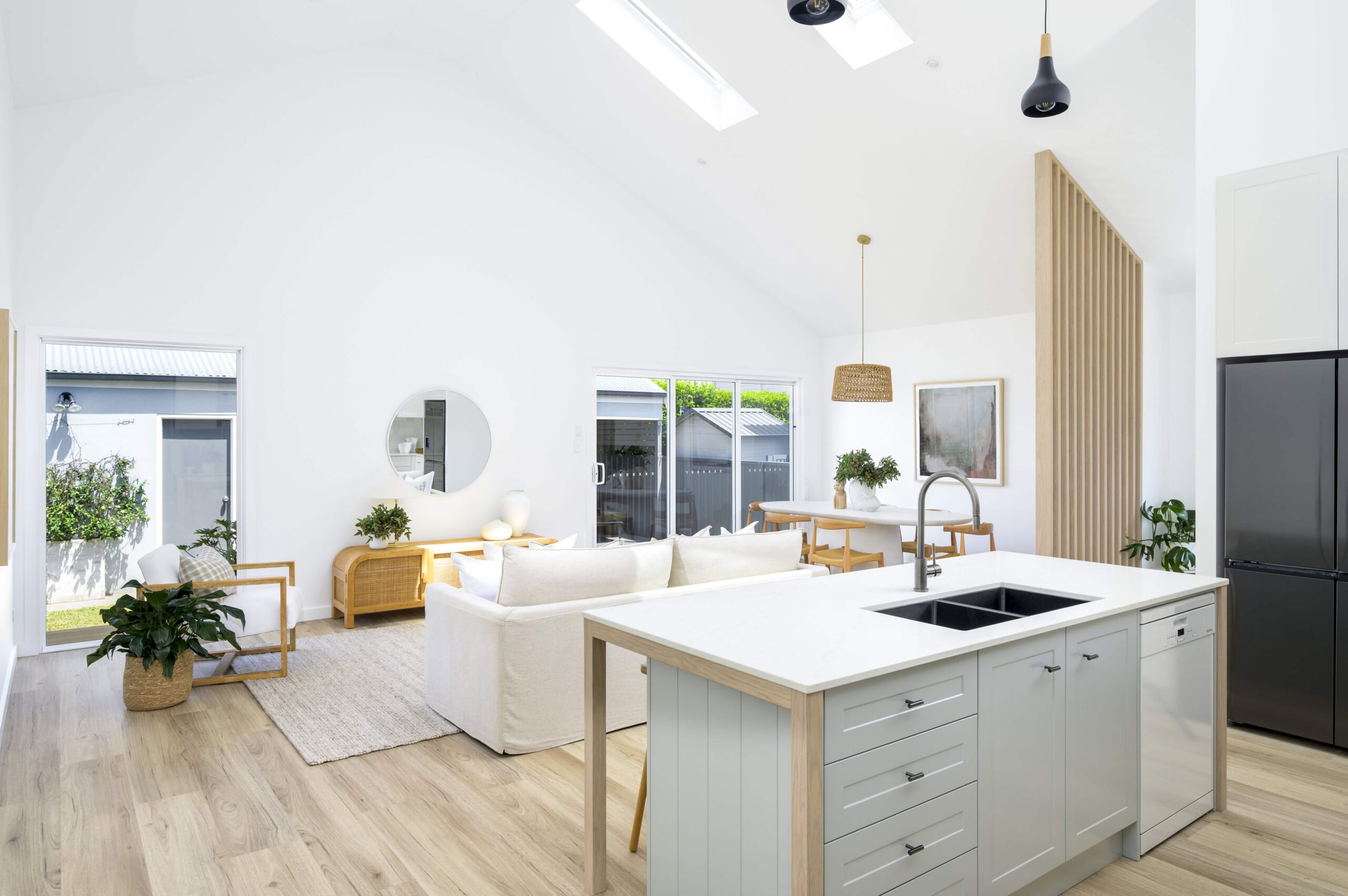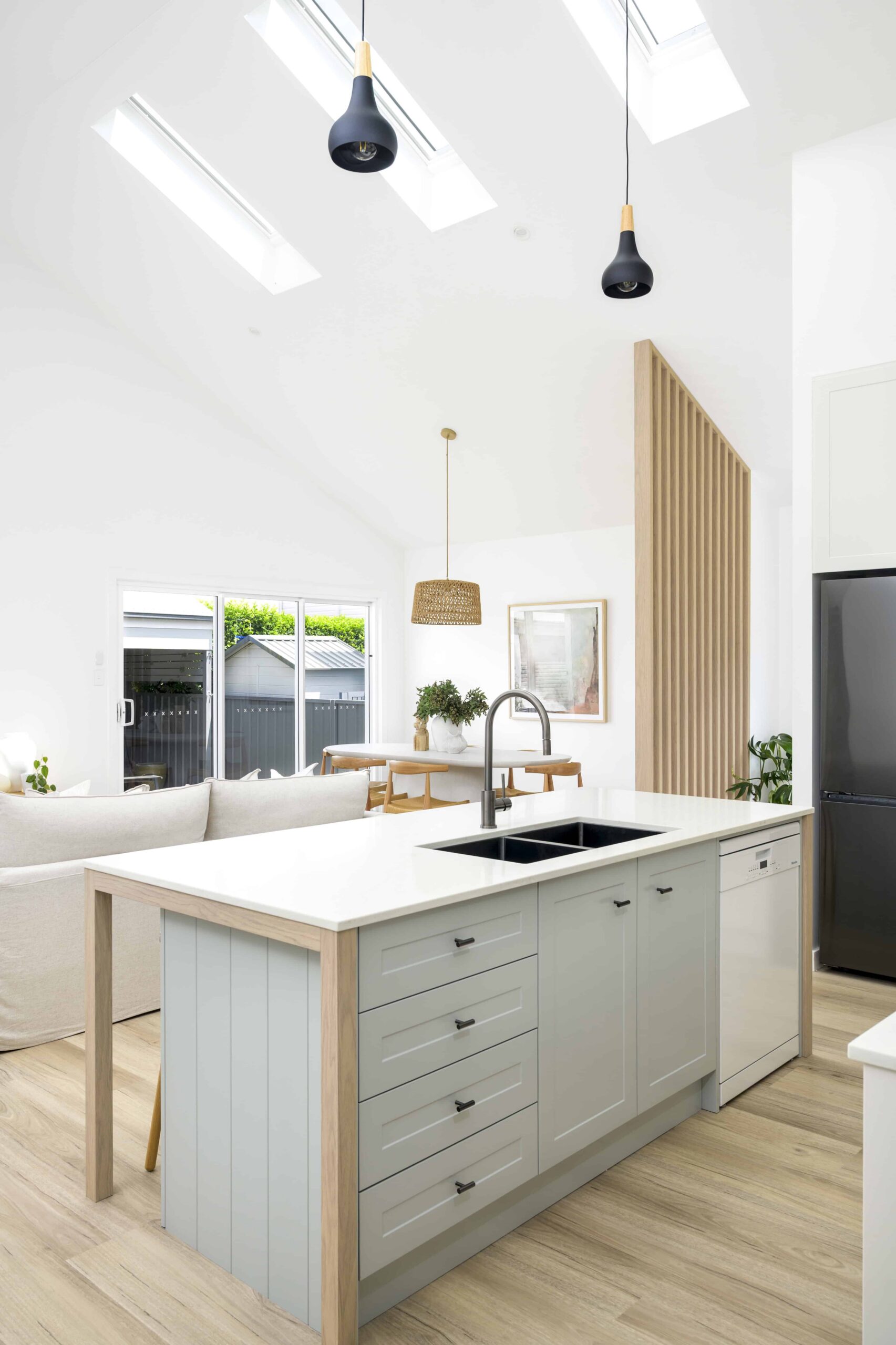 The result is a home that feels significantly more open, connected and easy to live in. Natural light now flows through the main living areas, transforming what was once a dark interior into a bright and inviting space, while the addition of a second living area provides flexibility for a growing family.
