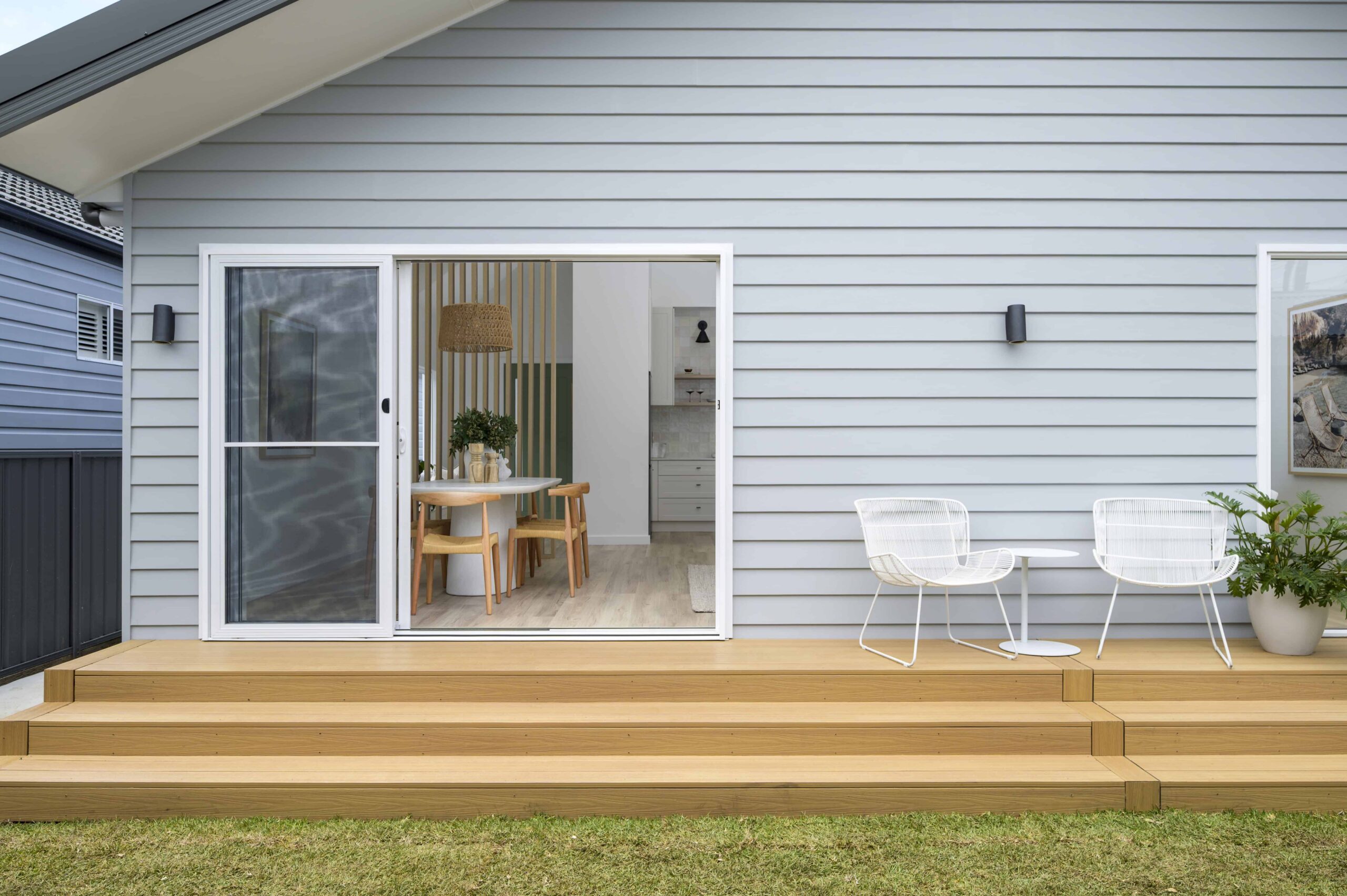 Alongside the extension, we completed a full internal renovation, reworking the layout to open up key living areas and allow natural light to move more freely through the home. The project introduced a new open-plan kitchen, living and dining area, supported by a walk-in pantry, updated laundry and additional storage throughout. A relocated entryway and rear deck further improved how the home connects internally and to the outdoors.